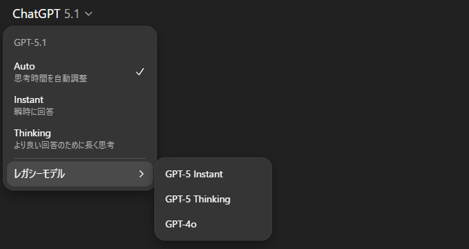 GPT-5.1では、そうした切替の精度や、Thinkingの回答がやたら事務的だったりする点が改善されています。