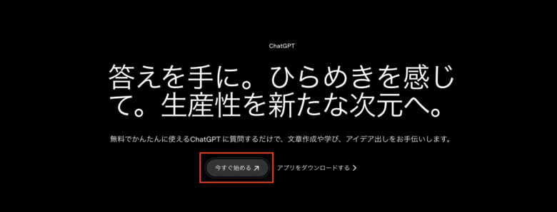ChatGPT(OpenAI)の公式ページにアクセスして、赤枠の部分をクリックします。