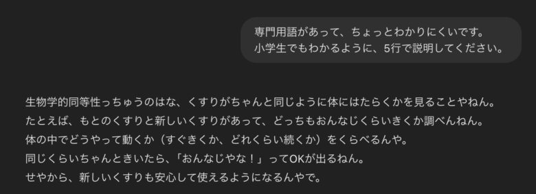 たとえば、見るからに難しそうな、薬理学の『生物学的同等性』について調べてみましょう。